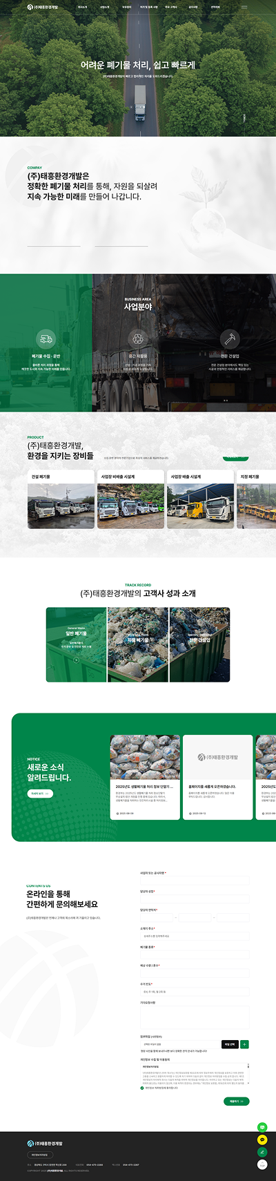 종합 폐기물 수집운반 및 중간 재활용 전문업체 반응형 홈페이지 제작